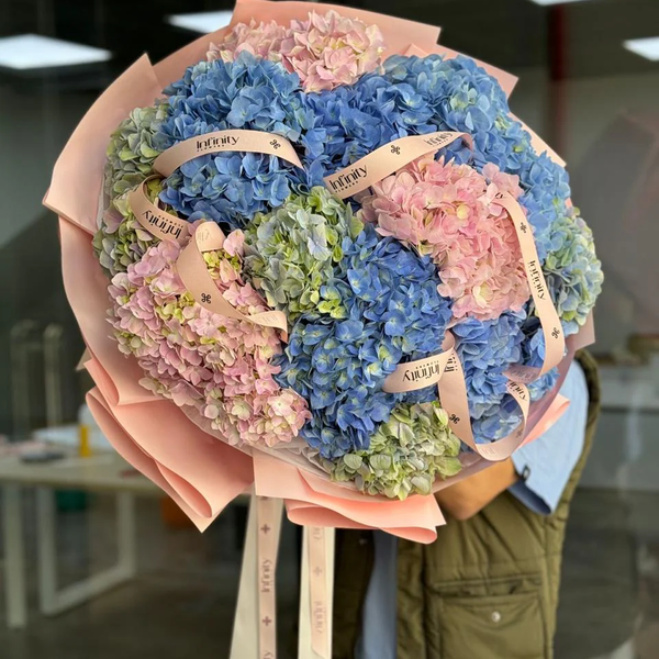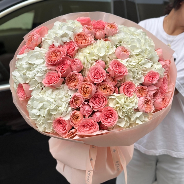Bouquet Sweet Candy with hydrangea, peony rose and carnation