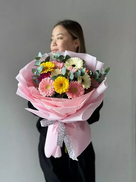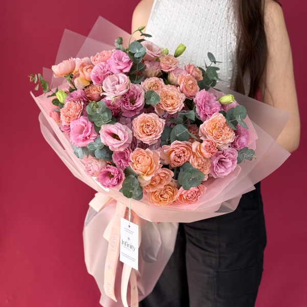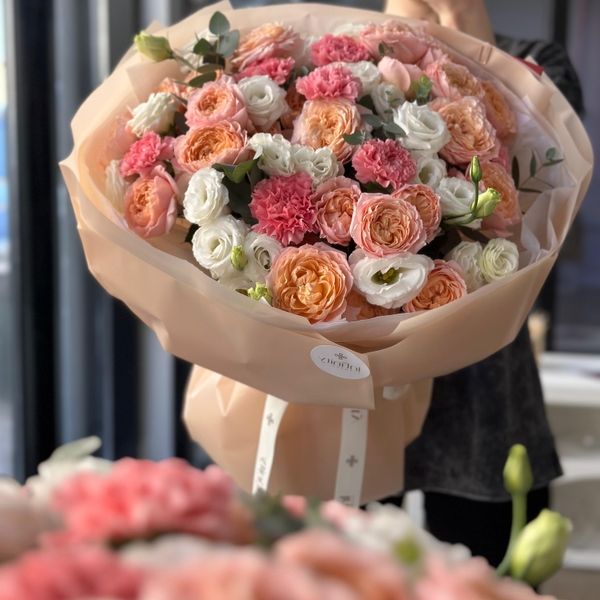 Bouquet Sun in clouds M with peony rose, carnation and lisianthus
