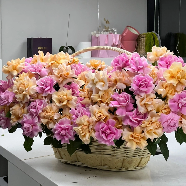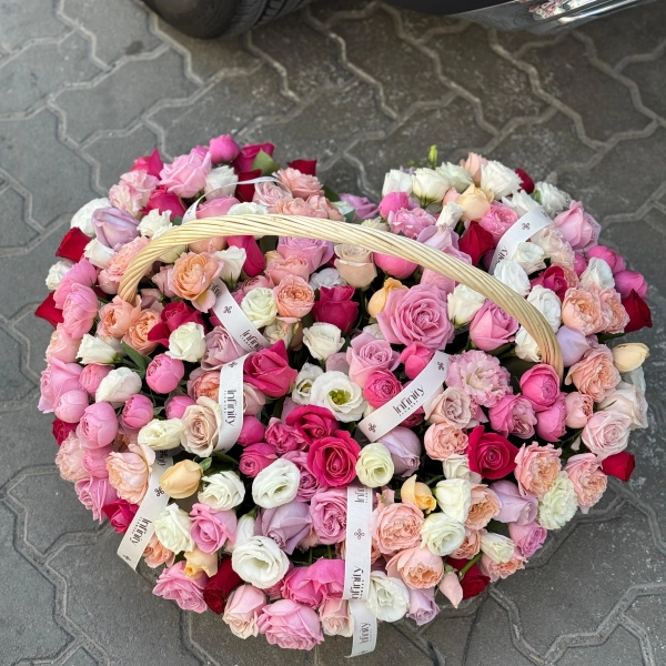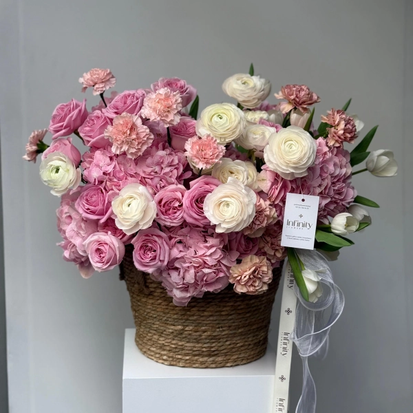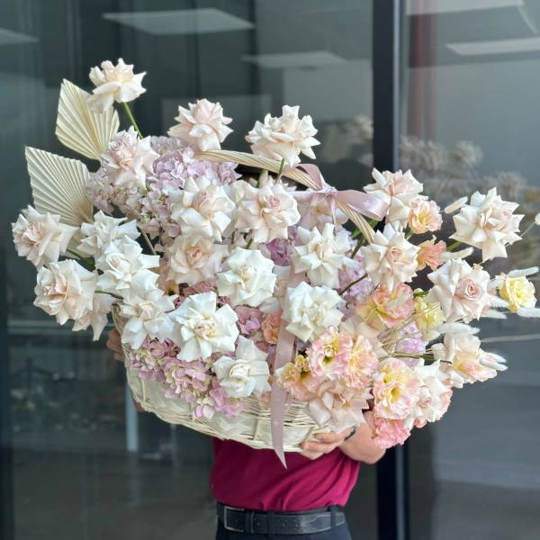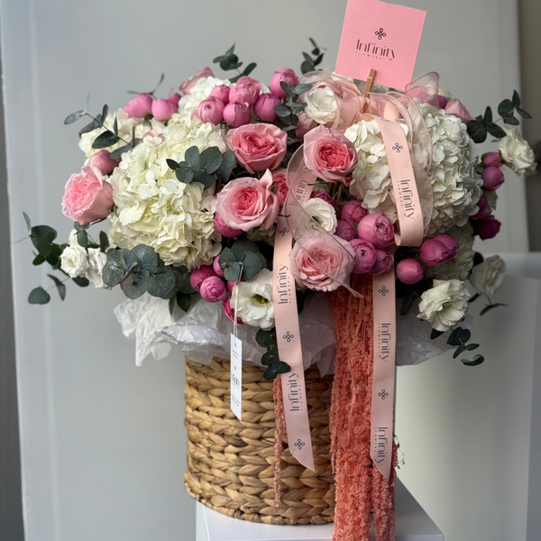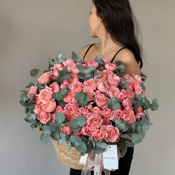 VIP basket "Big love" with peony rose, rose and lisianthus