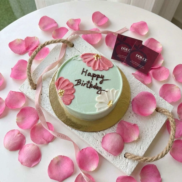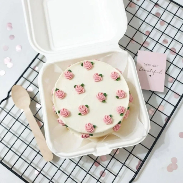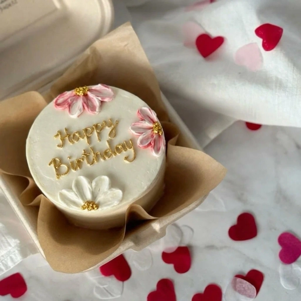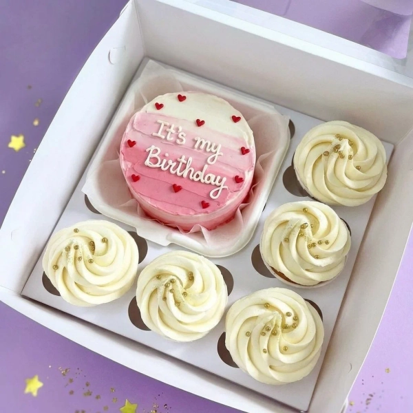 Classic Bento Cake with Flowers Print & Vanilla Cupcakes Set (5 pcs)