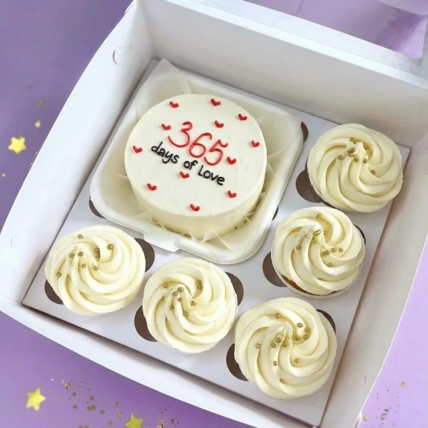 “Love You” Bento Cake & Cupcakes Set Vanilla