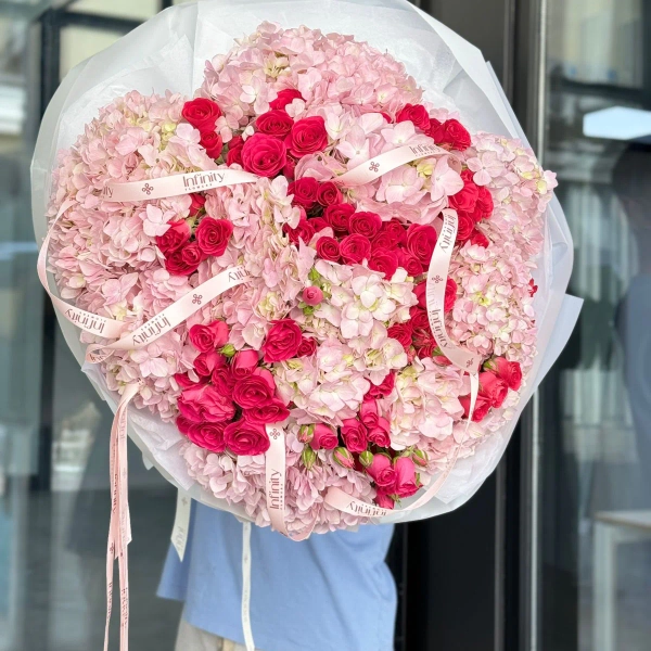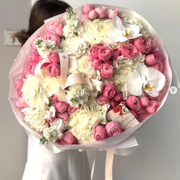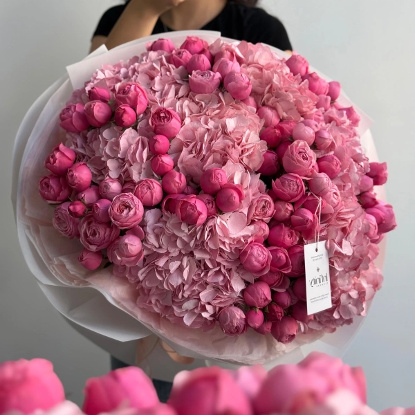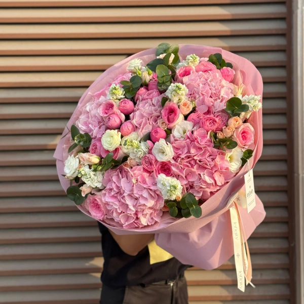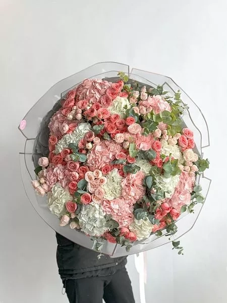 Bouquet from Pink Hydrangea and Spray Rose Mix