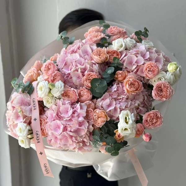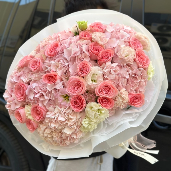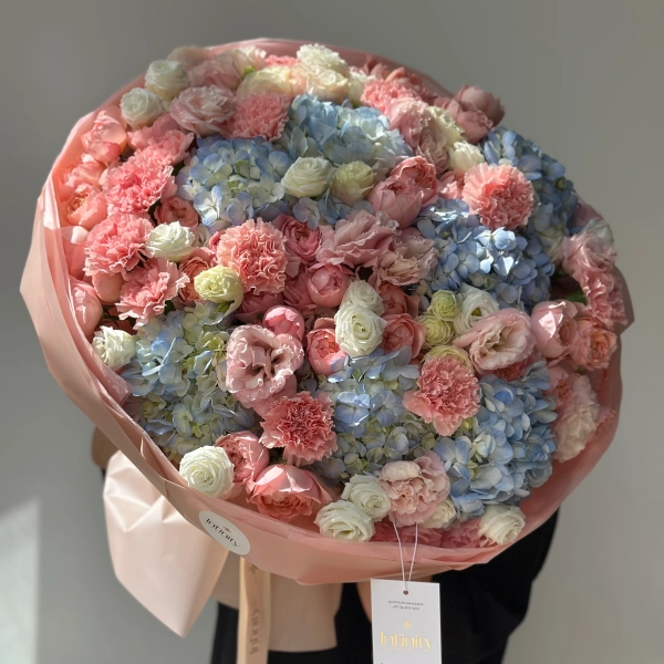 Flower bouquet Bloom Cloud with hydrangea, lisianthus, peony rose and carnation