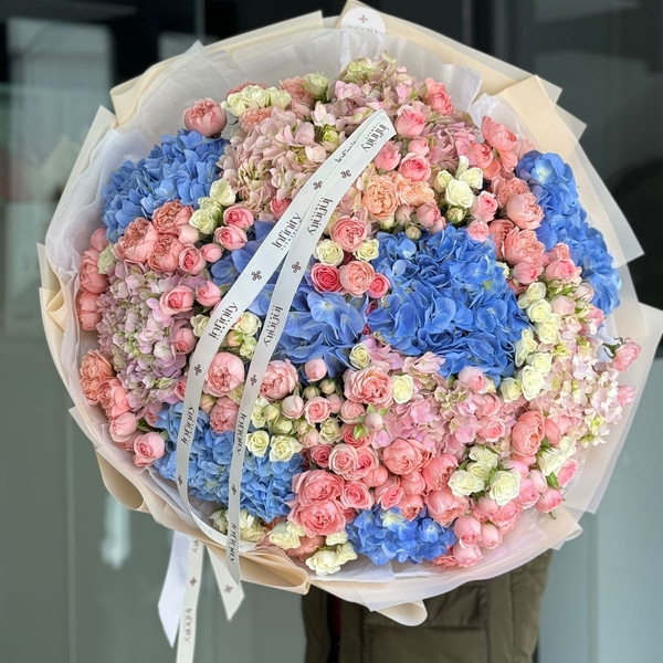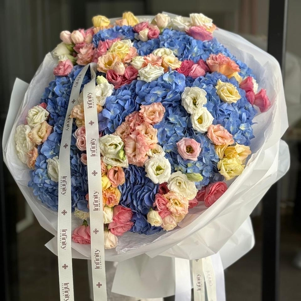 Flower bouquet Azure with hydrangea and lisianthus